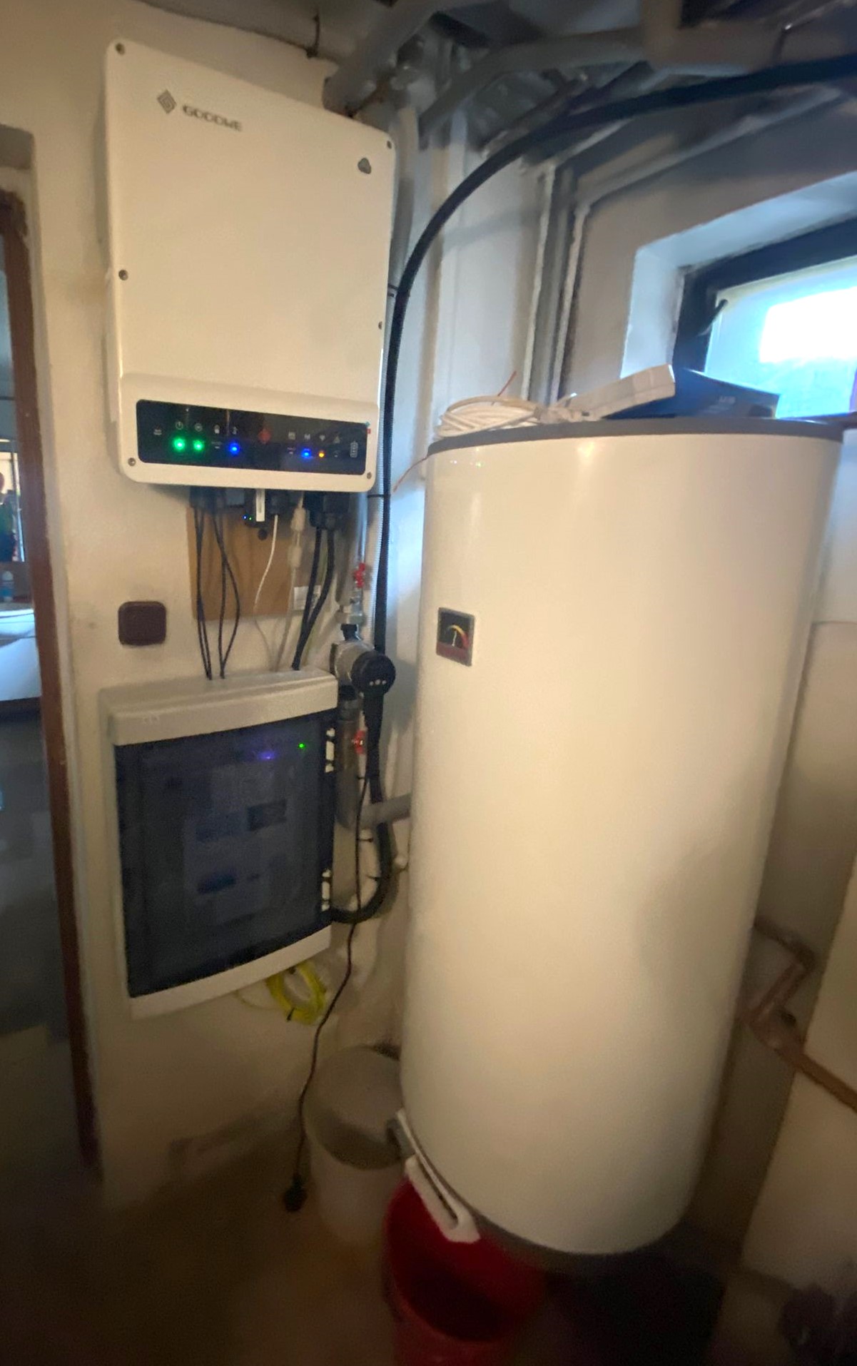 Kabely jsme bezpečně svedli ze střechy v UV chráničce podél fasády až do sklepních prostor.