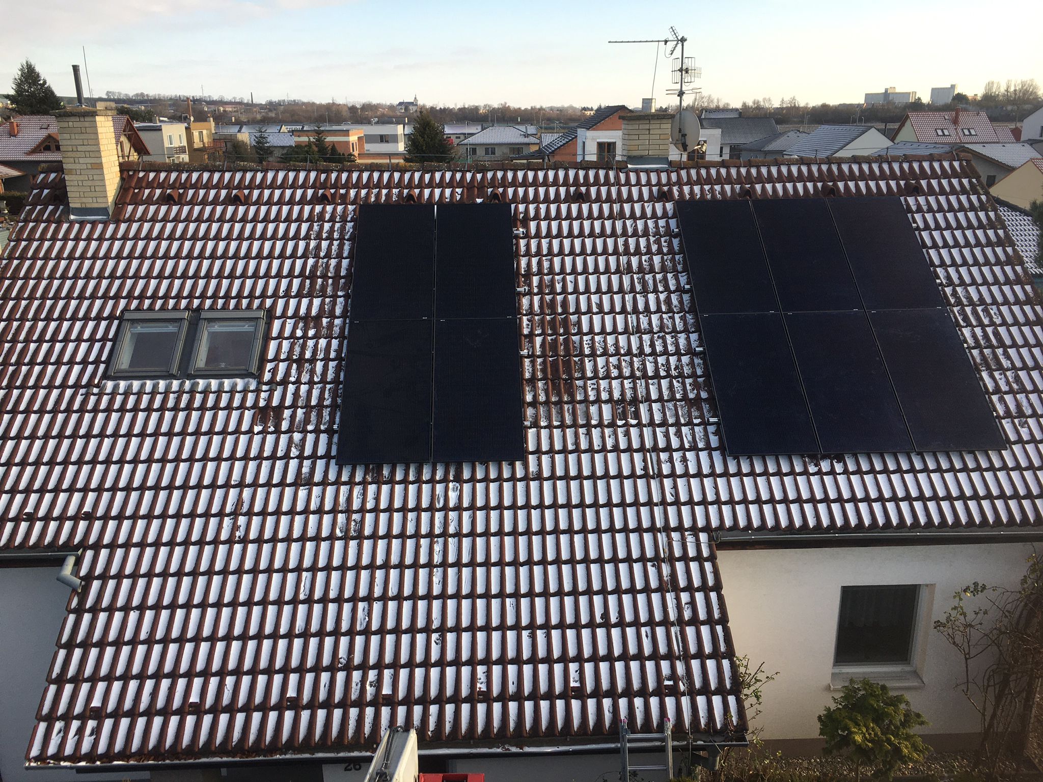 Instalace FVE trvá zpravidla 1 až 2 dny v závislosti na velikosti systému a typu střechy. První den se obvykle instalují fotovoltaické panely na střechu, druhý den probíhá instalace střídače, baterie, ochran a napojení na vaši elektroinstalaci. U menších instalací lze stihnout obojí v jeden den. Odhadovanou dobu instalace vám sdělíme před realizací.