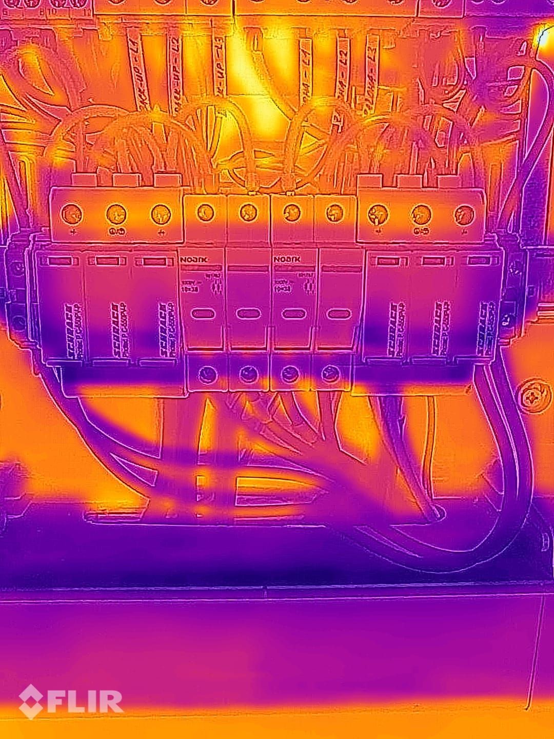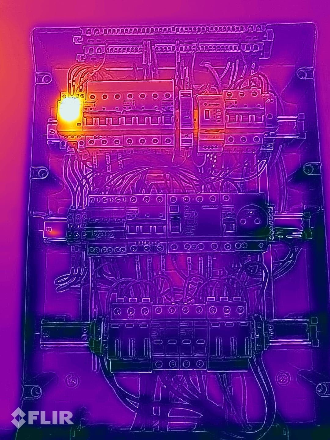 Termokamera odhalila zvýšenou teplotu na jedné svorkovnici, která signalizovala přechodový odpor.